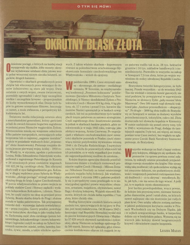Archiwum / Artykuł nr 2836 (28/1999) 23/26 Podziel się Tytuł Okrutny blask złota Autor Leszek Mazan Kategoria Artykuł Artykuł z numeru 2836 (2837/1999) Data wydania 31 października 1999 Tagi złoty pociąg