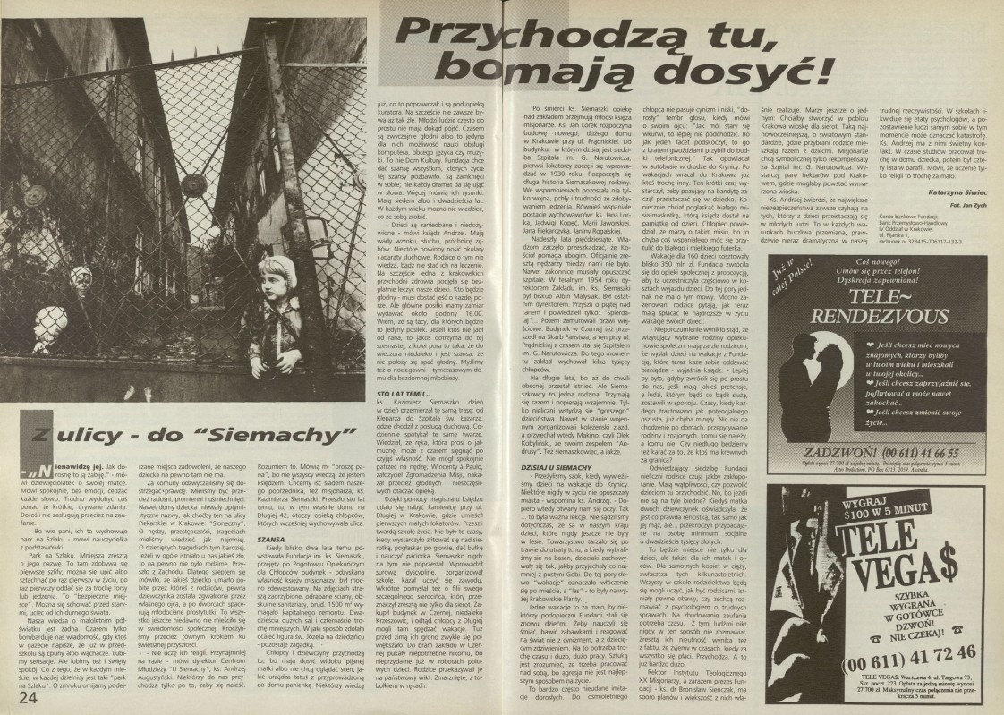 Archiwum / Reportaż nr specjalny 49/1993 18182/123969 Podziel się Tytuł Przychodzą tu, bo mają dosyć! Autor Katarzyna Siwiec Kategoria Reportaż Artykuł z numeru nr specjalny 49/1993 Data wydania 5 grudnia 1993 Tagi Fundacja im. ks. Siemaszki pomoc dzieciom patologiczne środowisko