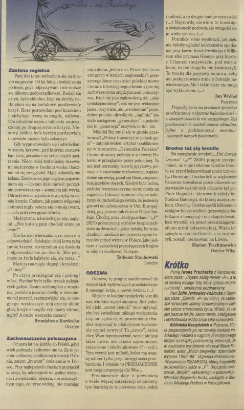 Archiwum / Listy do i od redakcji nr 2836 (28/1999) 02/73 Podziel się Tytuł Listy do i od redakcji Rubryka Listy do i od redakcji Artykuł z numeru 2836 (2837/1999) Data wydania 31 października 1999 Tagi krzyż las dych język polski polszczyzna Rej przebaczenie Grodno