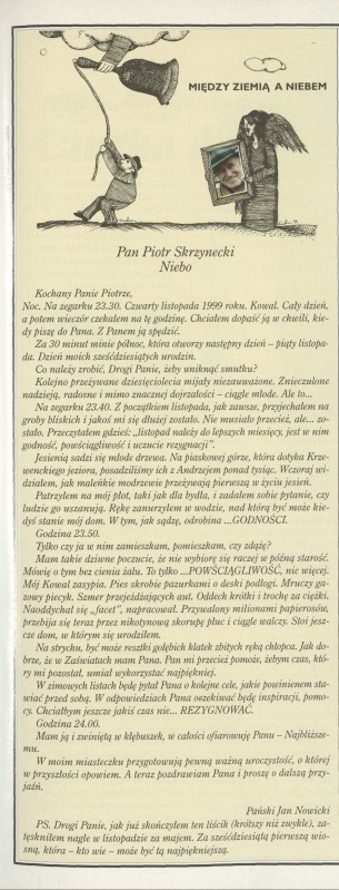 Archiwum / Korespondencja nr 2839 (28/1999) 04/81 Podziel się Tytuł Pan Piotr Skrzynecki Niebo Autor Jan Nowicki Kategoria Korespondencja Artykuł z numeru 2839 (2840/1999) Data wydania 21 listopada 1999 Tagi czas