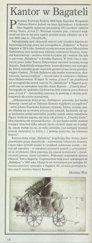 Archiwum / Relacja nr 2839 (28/1999) 123608/123969 Podziel się Tytuł Kantor w Bagateli Autor Monika Wąs Kategoria Relacja Artykuł z numeru 2839 (2840/1999) Data wydania 21 listopada 1999 Tagi Kantor