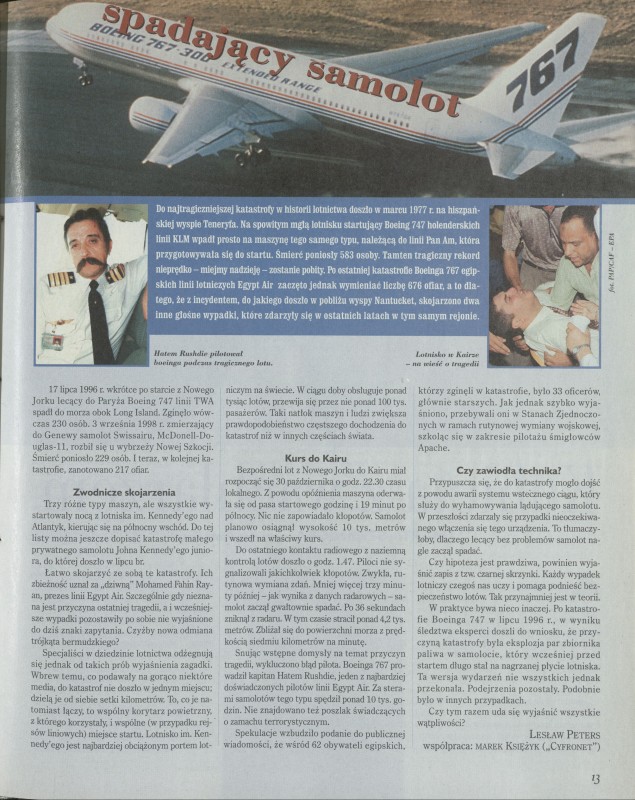 Archiwum / Relacja nr 2839 (28/1999) 02/17 Podziel się Tytuł Spadający samolot Autor Lesław Peters Kategoria Relacja Artykuł z numeru 2839 (2840/1999) Data wydania 21 listopada 1999 Tagi Katastrofa