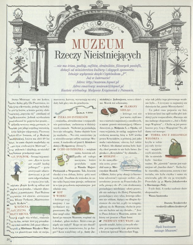 Archiwum nr 2839 (28/1999) 155/87855 Podziel się Tytuł Muzeum Rzeczy Nieistniejących Autor Dorota Terakowska Artykuł z numeru 2839 (2840/1999) Data wydania 21 listopada 1999 Tagi ucho od dzbanka