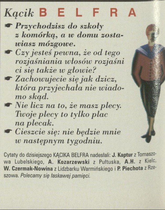 Archiwum / Rozrywka nr specjalny 2842/1999 123759/123969 Podziel się Tytuł Kącik belfra Kategoria Rozrywka Artykuł z numeru nr specjalny 2842/1999 Data wydania 5 grudnia 1999 Tagi humor rozrywka