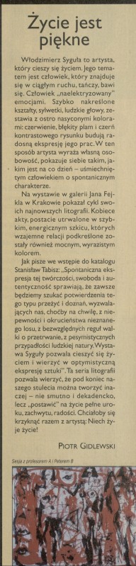 Archiwum / Kultura nr specjalny 2842/1999 830/832 Podziel się Tytuł Wystawy. Życie jest piękne Autor Piotr Gidlewski Kategoria Kultura Artykuł z numeru nr specjalny 2842/1999 Data wydania 5 grudnia 1999 Tagi Włodzimierz Syguła wystawa litografie