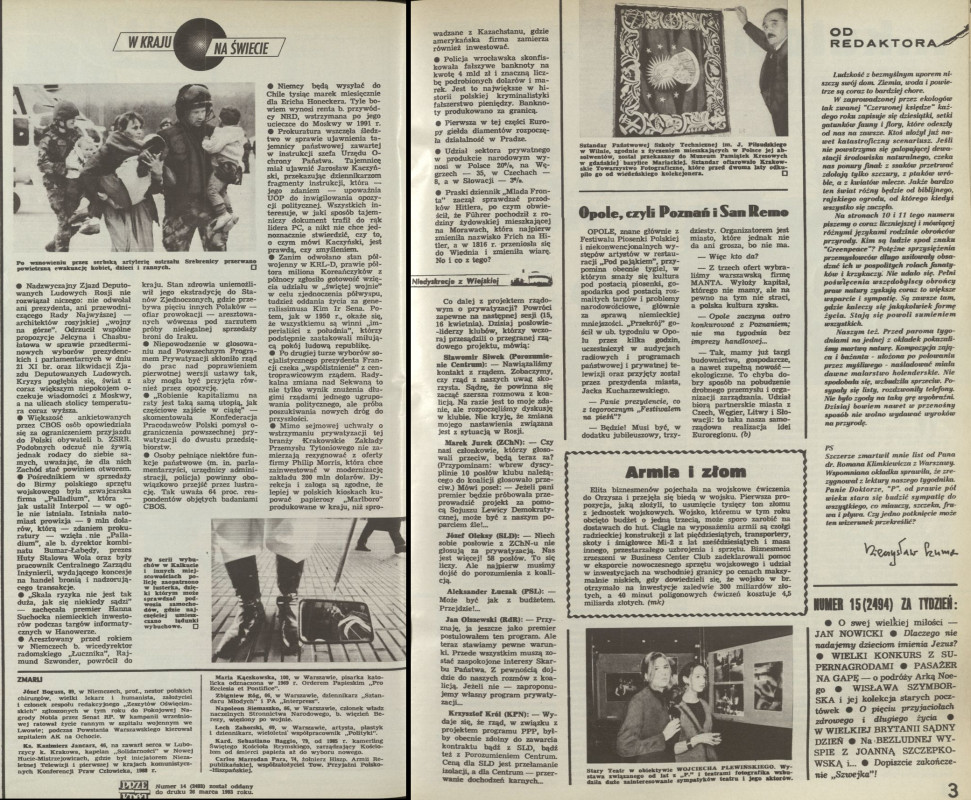 Archiwum / Przekrój tygodnia nr 2493 (14/1993) 20005/123969 Podziel się Tytuł W kraju, na świecie Rubryka Przekrój tygodnia Artykuł z numeru 2493 (14/1993) Data wydania 4 kwietnia 1993 Tagi Srebrenica UOP Erich Honecker Zjazd Deputowanych Ludowych Rosji