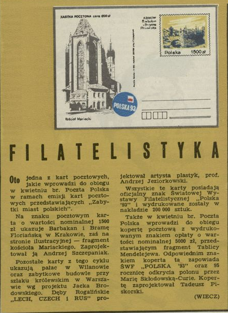 Archiwum / Filatelistyka nr 2493 (14/1993) 36/91 Podziel się Tytuł Filatelistyka Autor Wiecz Rubryka Filatelistyka Artykuł z numeru 2493 (14/1993) Data wydania 4 kwietnia 1993 Tagi znaczki pocztowe hobby