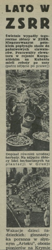 Archiwum / Różności nr 229 (35/1949) 6/6 Podziel się Tytuł Lato w ZSRR Kategoria Różności Artykuł z numeru 229 (35/1949) Data wydania 28 sierpnia 1949 Tagi ZSRR