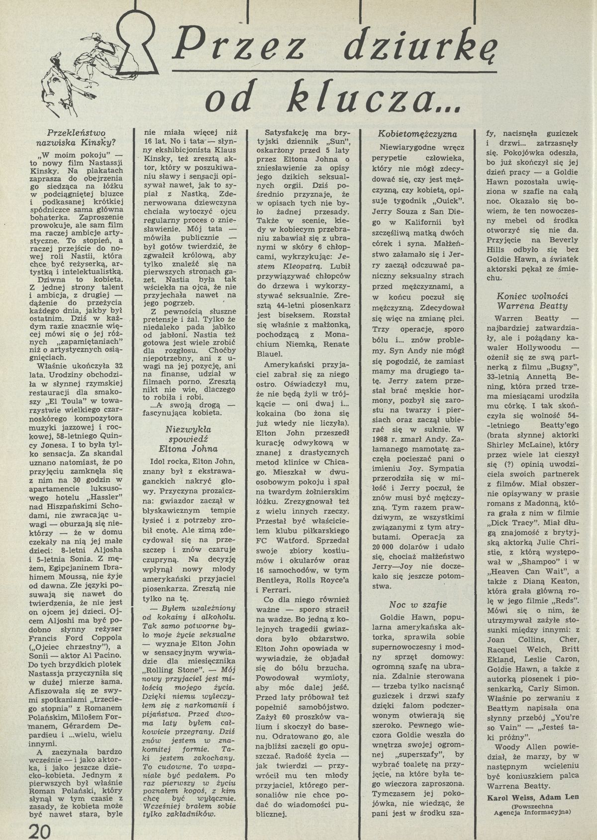 Archiwum / Artykuł nr 2446 (24/1992) 26/38 Podziel się Tytuł Przez dziurkę od klucza Autor Karol Weiss Kategoria Artykuł Artykuł z numeru 2446 (2447/1992) Data wydania 10 maja 1992