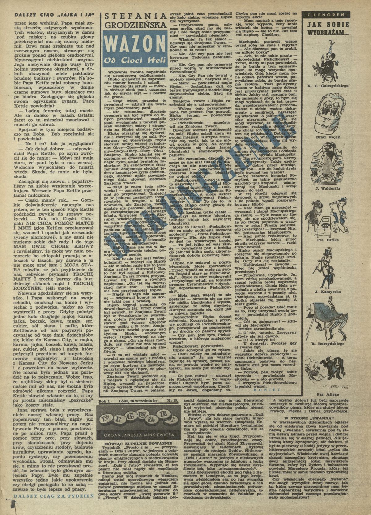 Archiwum / Opowiadanie nr 129 (39/1947) 3778/123969 Podziel się Tytuł Wazon od Cioci Heli (dokończenie) Autor Stefania Grodzieńska Kategoria Opowiadanie Artykuł z numeru 129 (39/1947) Data wydania 28 września 1947