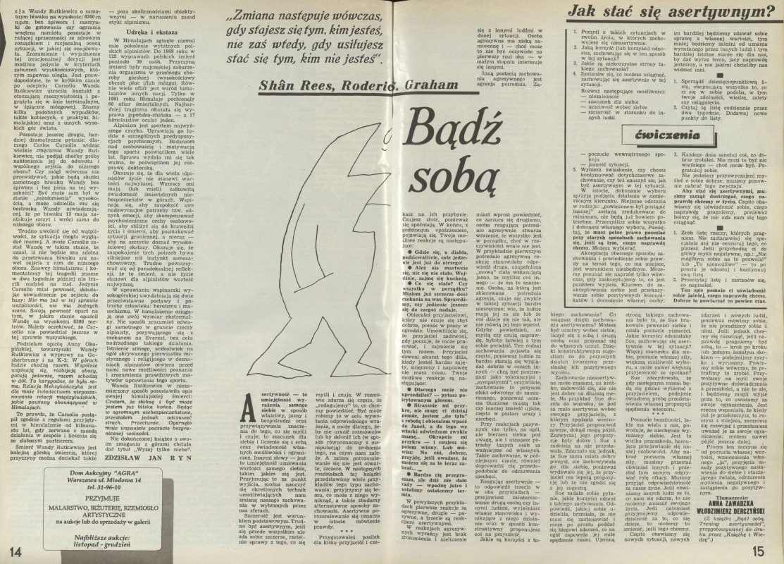 Archiwum / Społeczeństwo nr specjalny 42/1993 12/18 Podziel się Tytuł Bądź sobą Autor Shân Rees, Roderic S. Graham Kategoria Społeczeństwo Artykuł z numeru nr specjalny 42/1993 Data wydania 17 października 1993 Tagi trening asertywności fragment książki