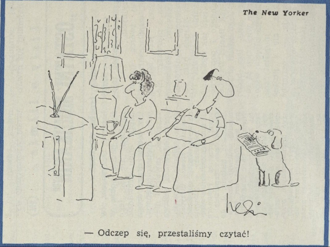 Archiwum / Rysunki z magazynu The New Yorker nr specjalny 42/1993 23/28 Podziel się Tytuł [Odczep się, przestaliśmy czytać!] Autor The New Yorker Rubryka Rysunki z magazynu The New Yorker Artykuł z numeru nr specjalny 42/1993 Data wydania 17 października 1993 Tagi rysunek rozmaitości rozrywka