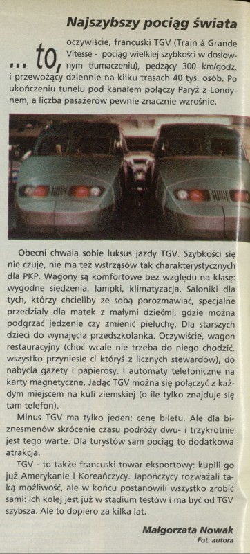 Archiwum / Różności nr specjalny 43/1993 18/25 Podziel się Tytuł Najszybszy pociąg świata Autor Małgorzata Nowak Kategoria Różności Artykuł z numeru nr specjalny 43/1993 Data wydania 24 października 1993 Tagi TGV Francja
