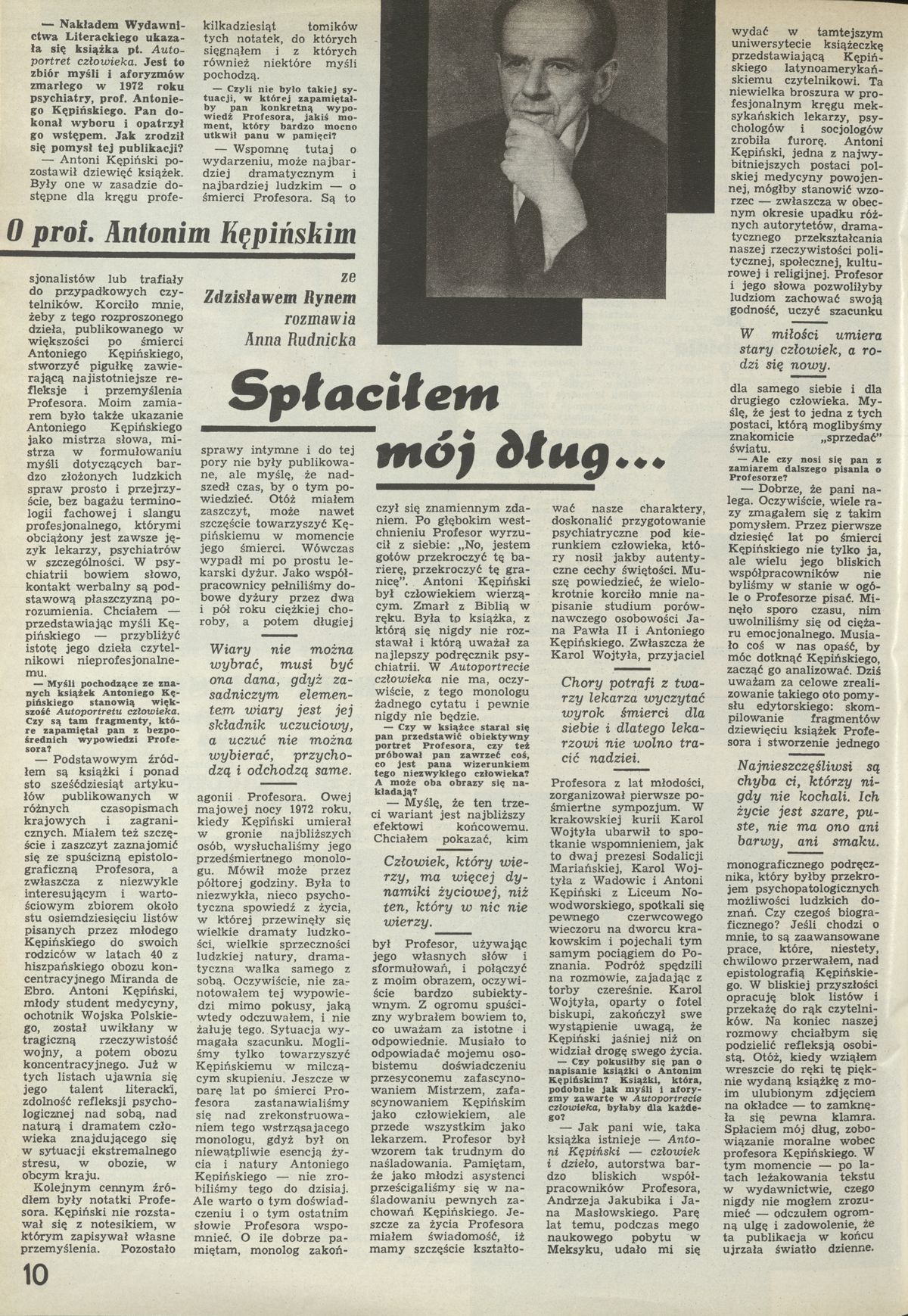 Archiwum / Wywiad nr 2498 (19/1993) 28/76 Podziel się Tytuł Spłaciłem mój dług Autor Anna Rudnicka Kategoria Wywiad Artykuł z numeru 2498 (19/1993) Data wydania 9 maja 1993 Tagi Zdzisław Ryn Antoni Kępiński lęk schizofrenia psychiatria