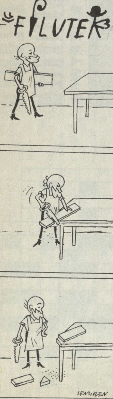 Archiwum / Profesor Filutek nr specjalny 43/1993 22/129 Podziel się Tytuł Prof. Filutek Autor Zbigniew Lengren Rubryka Profesor Filutek Artykuł z numeru nr specjalny 43/1993 Data wydania 24 października 1993 Tagi żart rysunkowy piła stół