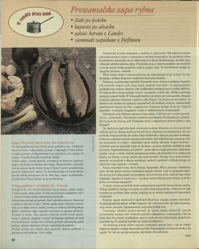Archiwum nr 2704 (16/1997) 17/623 Podziel się Tytuł Prowansalska zupa rybna Artykuł z numeru 2704 (16/1997) Data wydania 20 kwietnia 1997 Tagi przepisy kulinarne