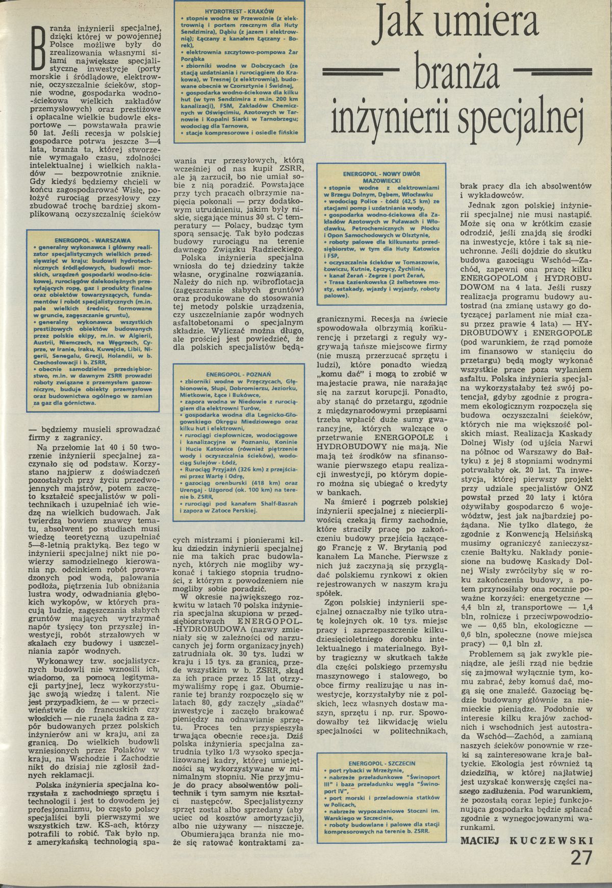 Archiwum / Artykuł nr specjalny 50/1993 105858/123969 Podziel się Tytuł Jak umiera branża inżynierii specjalnej Autor Maciej Kuczewski Kategoria Artykuł Artykuł z numeru nr specjalny 50/1993 Data wydania 12 grudnia 1993 Tagi inżynieria specjalna gospodarka