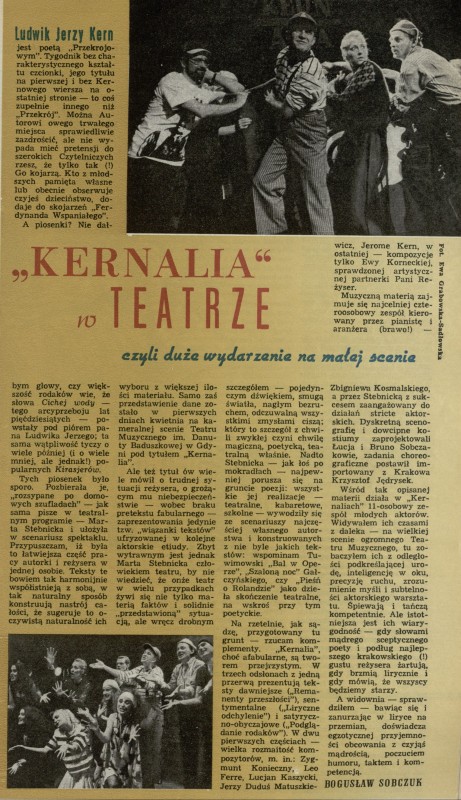 Archiwum / Teatr nr 2501 (22/1993) 28/103 Podziel się Tytuł „Kernalia” w teatrze Autor Ludwik Jerzy Kern Bogusław Sobczuk Rubryka Teatr Artykuł z numeru 2501 (22/1993) Data wydania 30 maja 1993 Tagi Kernalia teatr