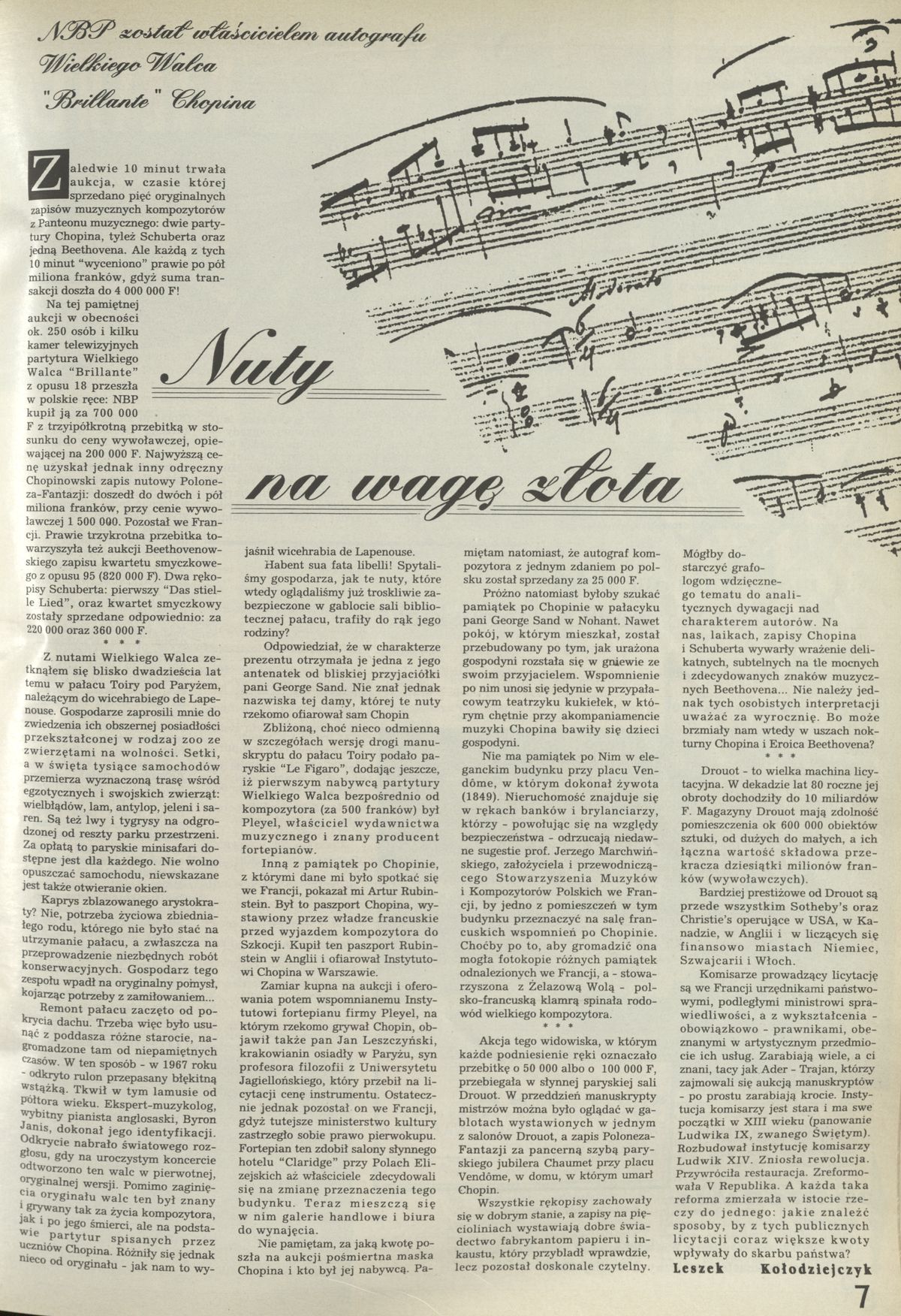 Archiwum / Kultura nr 2503 (24/1993) 34/97 Podziel się Tytuł Nuty na wagę złota Autor Leszek Kołodziejczyk Kategoria Kultura Artykuł z numeru 2503 (24/1993) Data wydania 13 czerwca 1993 Tagi muzyka Fryderyk Chopin Wielki Walc Brillante