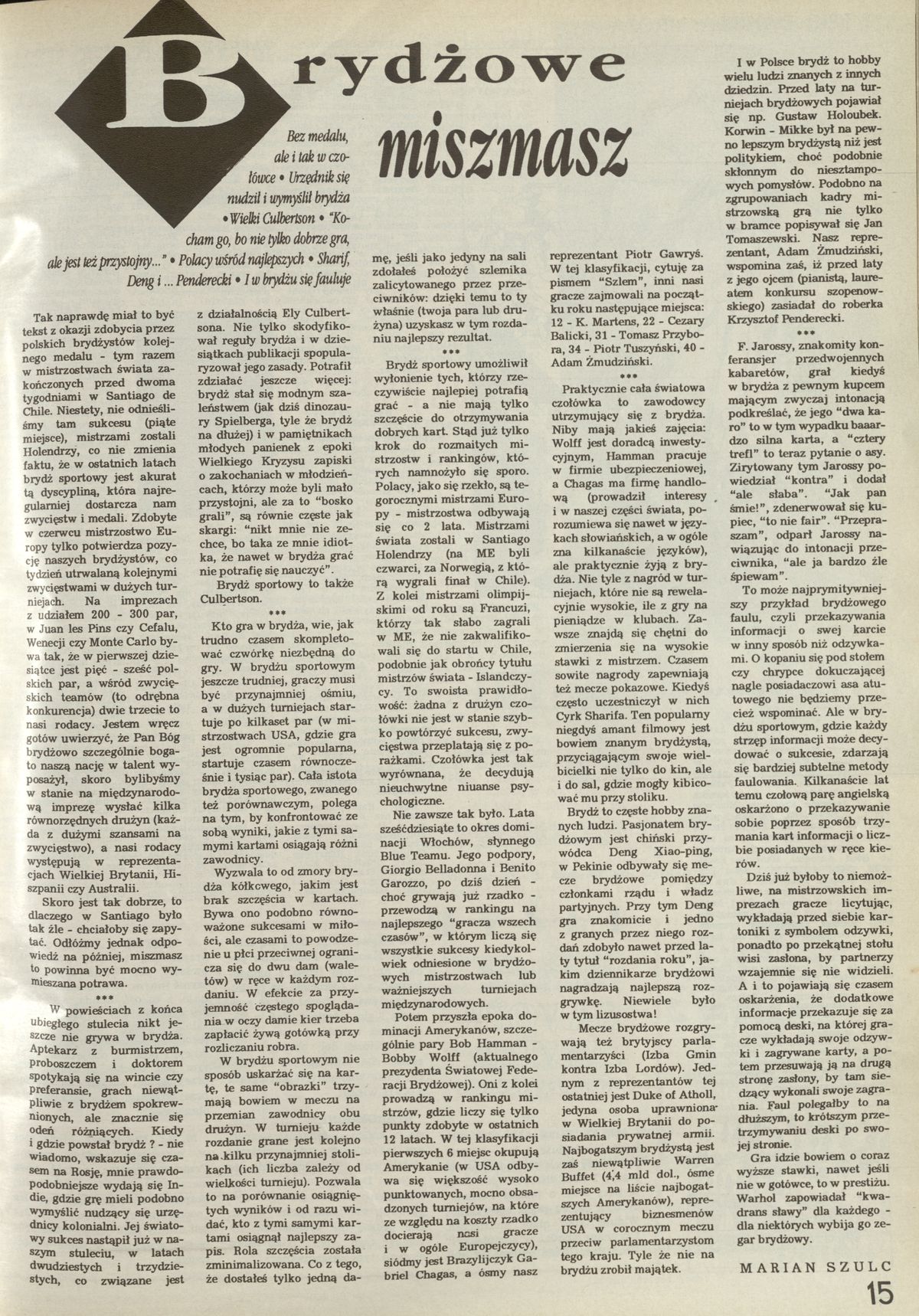 Archiwum / Artykuł nr specjalny 39/1993 105287/123969 Podziel się Tytuł Brydżowe miszmasz Autor Marian Szulc Kategoria Artykuł Artykuł z numeru nr specjalny 39/1993 Data wydania 26 września 1993 Tagi brydż różności